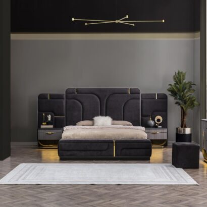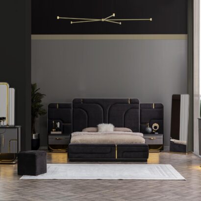 King Size Bed,2 Side Table & Dresser with Mirror And Wardrobe.